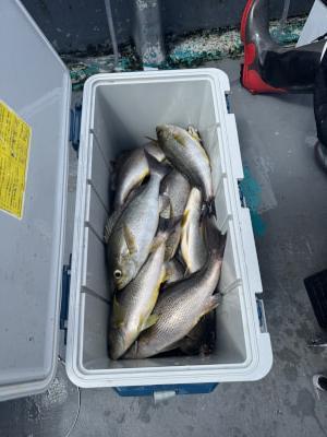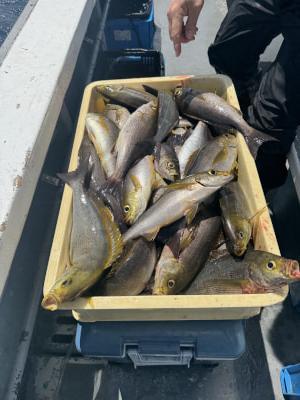 イサギ | 28〜39cm | 54匹 | 竿釣り、イサギ仕掛け3.5号3本針、鉄仮面120 | アミエビ |