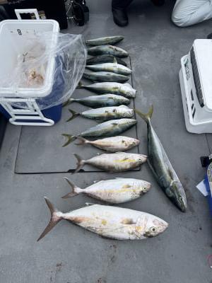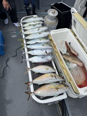 カンパチ | 65cm | 1匹 | 竿釣り、落とし込み仕掛け10号4本針、オモリ80 | ||