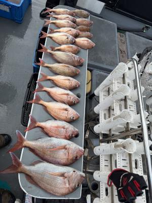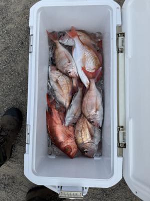 マダイ | 34〜52cm | 8匹 | 竿釣り、ハリス6号2本針、オモリ120 | オキアミ | |