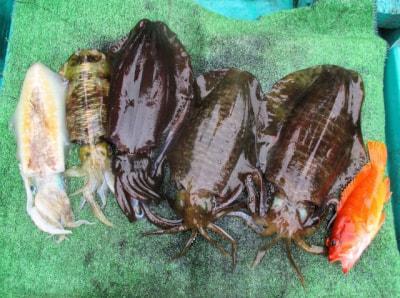 前川さん、アオリイカゲット。 |