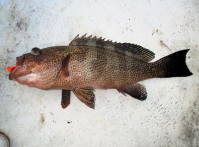 エギ丸呑みのオオモンハタ。 |