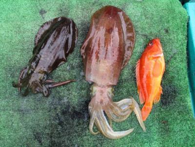 大機さん、赤のアオリイカゲット。 |