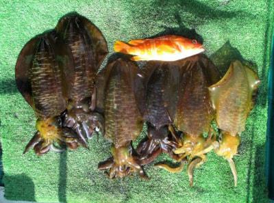 曲里さん、アオリイカゲット。 |