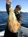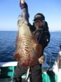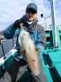 | ティップランで出船したけど、大半の時間潮なし風なしで、船流れず大苦戦しました。お一人が赤の1340gを頭に2杯でした。他にエギで釣ったアカハタ。 |