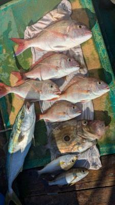 | オキアミ五目狙いで出船しました。良型マダイ混じりでまずまず釣れました。マダイ順調です😊予約受付中! |