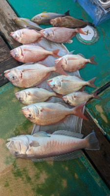 オキアミ五目狙いで出船しました。高級シロアマダイもあがりました。マダイ、チダイも良く釣れました。予約受付中です😊 |