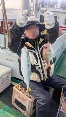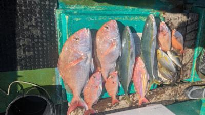 | オキアミ五目狙いで出船しました。良型マダイ5枚、ハマチ、イトヨリなどなどいろいろ良く釣れました。予約、お問い合わせお待ちしています😊 |