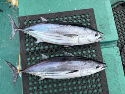 | 今日も古座沖でキハダ狙い。 6〜7キロのカツオが2本釣れました! |