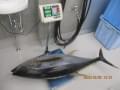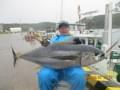 | 今日は朝に40キロぐらいのキハダ、11時半頃に80キロ近いキハダがかかり、無事釣り上げることができました! |