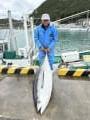 | 今日もキハダフカセに出船。 朝7時頃ヒットし、50キロほどのキハダが上がりました。 今日はそのまま早上がりしました。 |