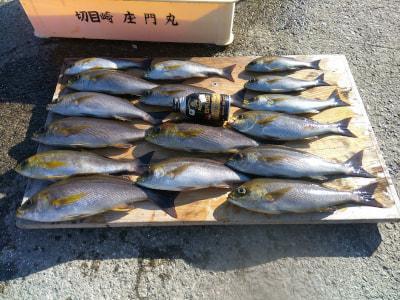 イサギ | 23〜34cm | 14匹 | テンビンウキ釣り ハリス3号 ウキ下9〜6ヒロ | オキアミ |