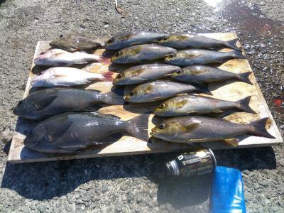 グレやヤイトガツオも多数混じってイサギも42匹GET! 大阪市 岡田様2人の釣果 |