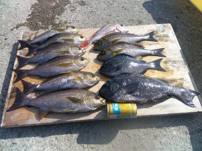 イサギ | 31〜40cm | 8匹 | 完全フカセ釣り ハリス3号 | オキアミ |
