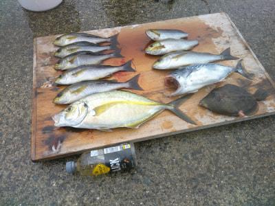 シマアジ | 45cm | 1匹 | 完全フカセとテンビンズボ釣り ハリス1.5〜3号 | オキアミ |