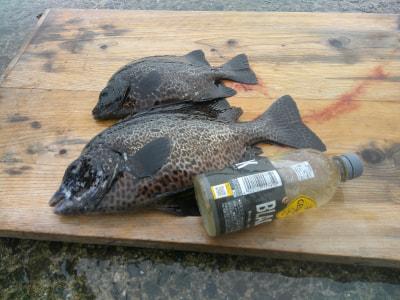 イシガキ | 28〜37cm | 2匹 | ワイヤー38番 イシダイ針15号 オモリ20号 | ウニ |