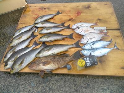 今日は小型ながらアカハタやメイチダイ等も混じりましたが、イサギは少なめでした。 |