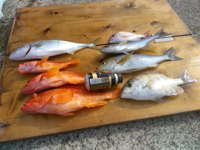 アカハタ | 24〜35cm | 3匹 | テンビンズボと銅付き仕掛け ハリス5号 | オキアミ |