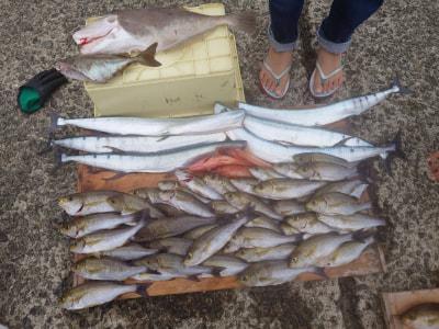 イサギ | 23〜36cm | 18匹 | テンビンズボとウキ釣り ハリス4号 ウキ下9〜7ヒロ | オキアミ |