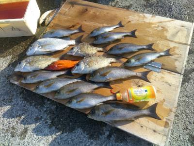 ヤイトガツオ等も混じってイサギ型揃いで12匹! 神戸市 久延様2人の釣果 |