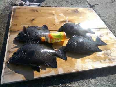 イシガキ | 34〜37cm | 4匹 | ワイヤー37番 イシダイ針15号 オモリ20号 | ウニ |