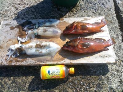 アオリイカ | 15〜22cm | 3匹 | 生きエサのヤエン仕掛け 道糸3号 | 活きアジ |