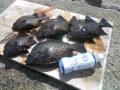今日も本ガツオやヤイトガツオの気配も出て、まずまずの釣果でした! 釣ってはいけない魚も回遊しているようで…。 |