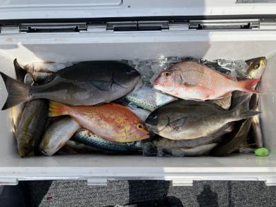 | グレ釣り場は超激流で釣りにならず。 あちこち回って来ました。 イサギ、サバもそこそこ釣れました。 |
