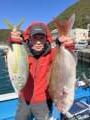 | ゲスト1名様でウメイロ、キビレカワハギ、キンムロ、サバでした。 |