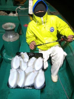 モンゴウイカ | 0.4〜1.6Kg | 1人→3〜12杯 | 竿釣り | エギ3.5号 |