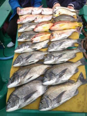 チヌ | 44〜49cm | 10匹 | 竿釣り | オキアミ |