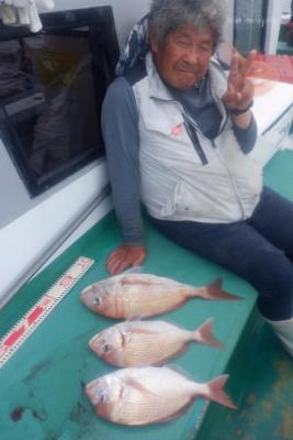 お見事!細ハリスで大ダイ70pGET!! 新井様 |