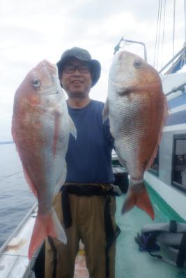 前半は潮早く後半、潮弛みからジャンボ・メガ・マダイなどで皆様に楽しんで頂きました。 |