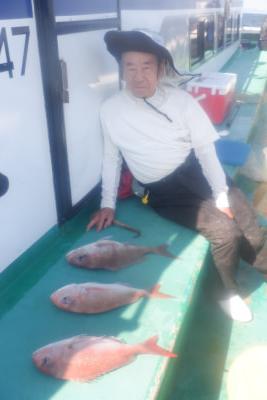 朝イチは潮が動きアタリもボチボチありましたがその後、潮の動かない一日でした。 ハリス切れやバラシもよくあり太めのハリスを持参して頂ければと思います。 |