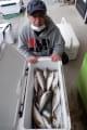 | メガアジ釣りに出船!昨日より潮が少し動きメガアジ・ヒラメ・大ダイなどでお土産に巻き上げ途中の針ハズレもかなりあり! |