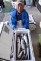 | メガアジ釣りに出船!!前半、波高あり釣りずらかったが後半、波も収まりヒラメやマダイの混じりお土産に |