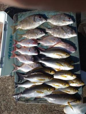 | オキアミ5目狙いで出船\(^o^)/ 色々釣れて楽しめました メイチも全員釣ってくれました\(^o^)/ 11日から天気回復予想ですお客様予約入りしだい出船です宜しくです |