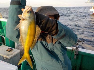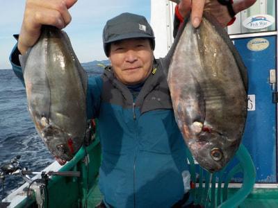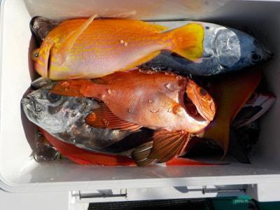 | 今日はシマアジのアタリはナシでしたがオキアジは全員釣れました。ヤイトガツオは1.8kgが1本 クエの7kgも釣れました |