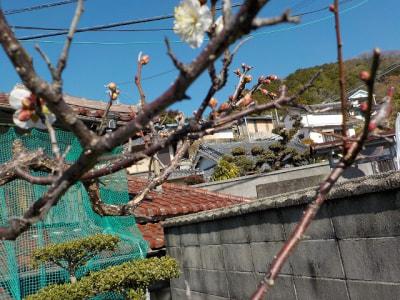 庭の梅の花が15日に開花しました 昨年より1週間ほど早い春です |