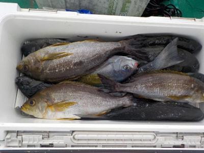 | 横川さん1名で出船 浅場だけの釣りでイサギは3枚だけでしたが内2枚は40cmと43cmのジャンボイサギでした。予想どうりグレが釣れ始めました。口太は白子が入っています |