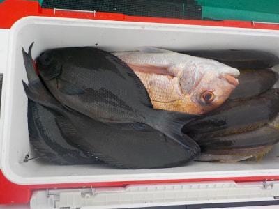 岡本さんのクーラー イサギは18匹とマダイ49cmも |