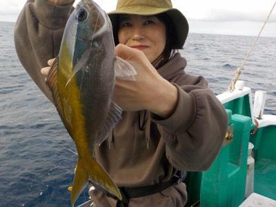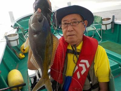 | 3名で出船 ウネリ高く船酔いするような波がありました。メイチダイは8枚。深場は下り潮速くサメはいなかったがアタリは少なかった |