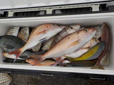| 古屋さんら2名で出船 中深海はサメがいてダメでした。今日はほとんど浅場での釣りになりました |