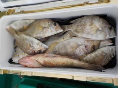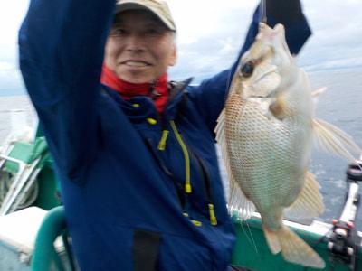 | 國定さん1名で出船 下り潮速くウネリも高く釣りづらかったが魚の喰い活発でメイチダイは10枚釣れました。船酔いの為9時納竿早帰りしました |