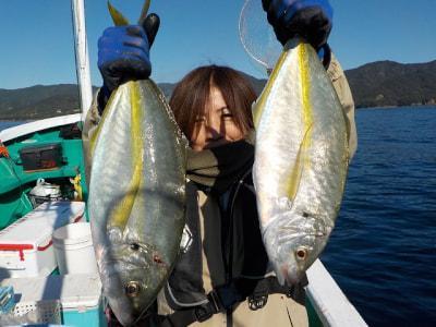 香奈枝ちゃんもシマアジ釣り初挑戦で2枚ゲット! |