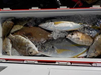 | シマアジは13回ヒットし釣り上ったのは8枚で8枚中50cmオーバーは3枚でした。 |