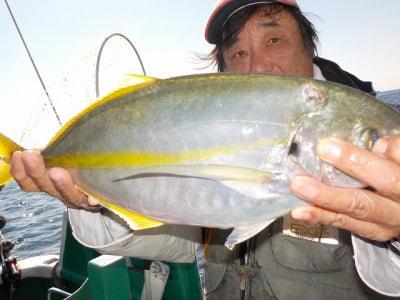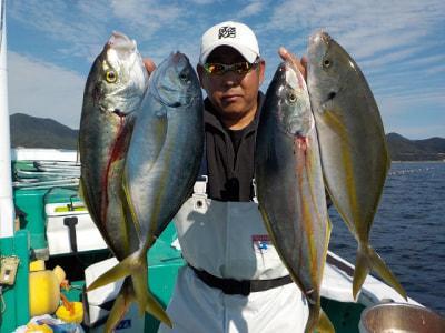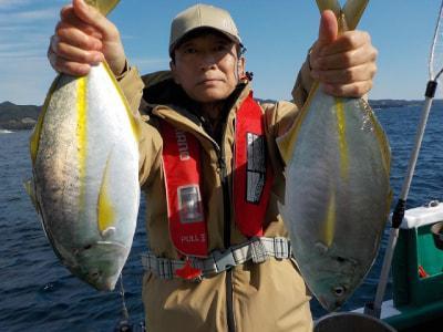 キャンセルあり緊急参戦した友人の新谷さん シマアジ55cm〜62cmを4枚 |