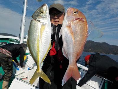 | シマアジは20枚ヒットして13枚上がりました。残念ながらアタリがなかったのは2名、4枚釣り上げた竿頭は2名おりました。8名で13枚 |