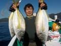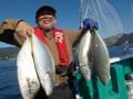 | 佐渡さんと岩佐さんで出船 朝の内は波が高く釣りづらかったがなんとかお土産になりました。 |