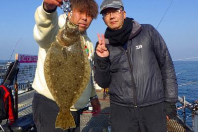 ヒラメ | 46〜45cm | 2匹 | のませサビキ(ハリス8号) | |