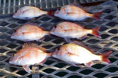 カスゴ級マダイ | 28〜25cm | 6匹 | ウキ釣り(ハリス1.75号・タナ7.5ヒロ) | シラサエビ |